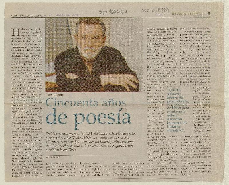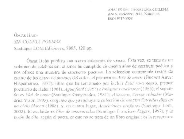 Autores chilenos - Hahn, Óscar - Sin cuenta poemas