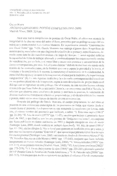 Autores chilenos - Hahn, Óscar - Archivo expiatorio