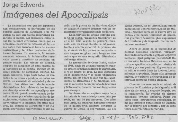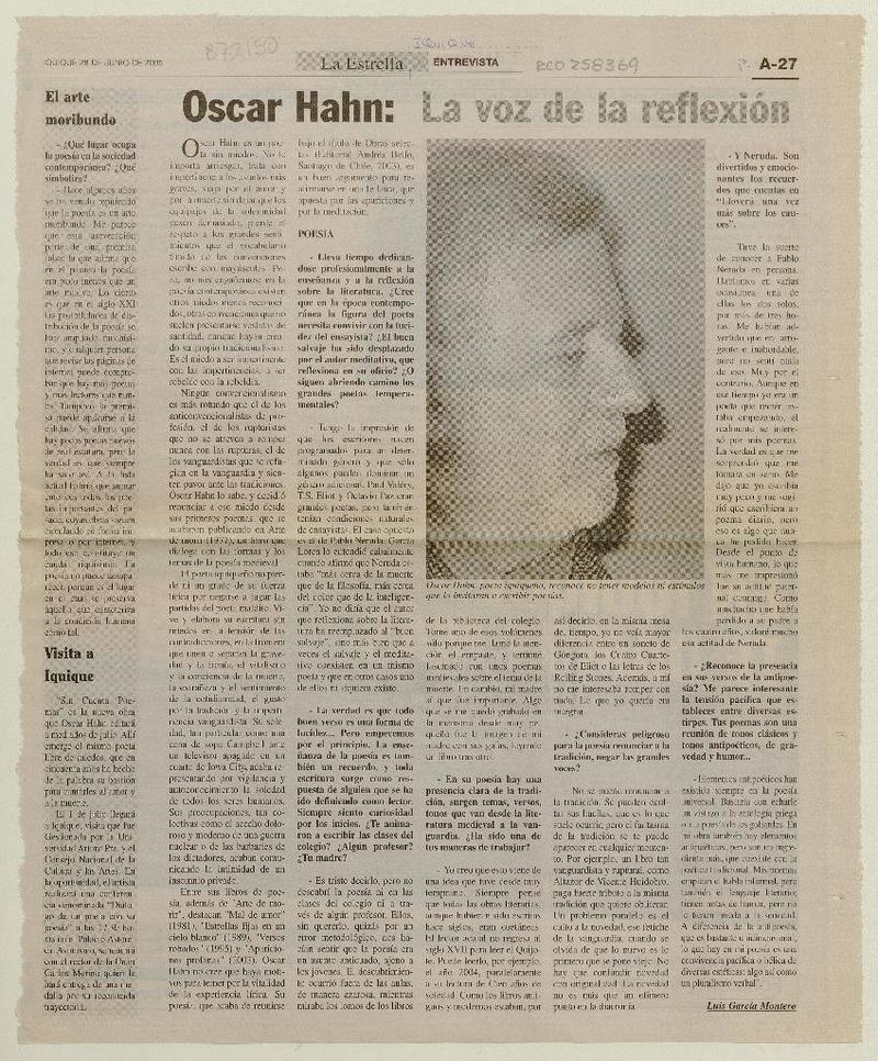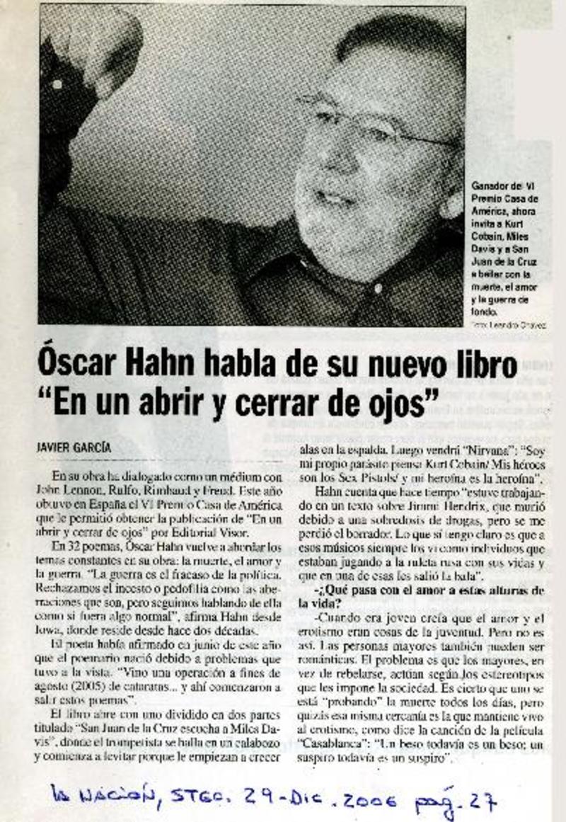 El apocalipsis de Óscar Hahn (entrevista) [artículo] Javier García.