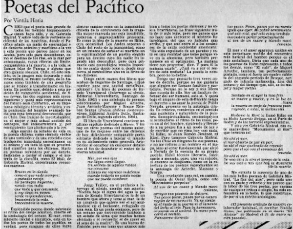 Autores chilenos - Hahn, Óscar - Antología virtual