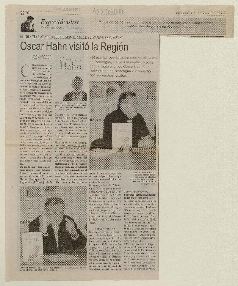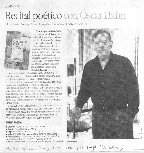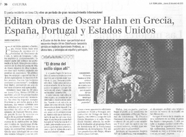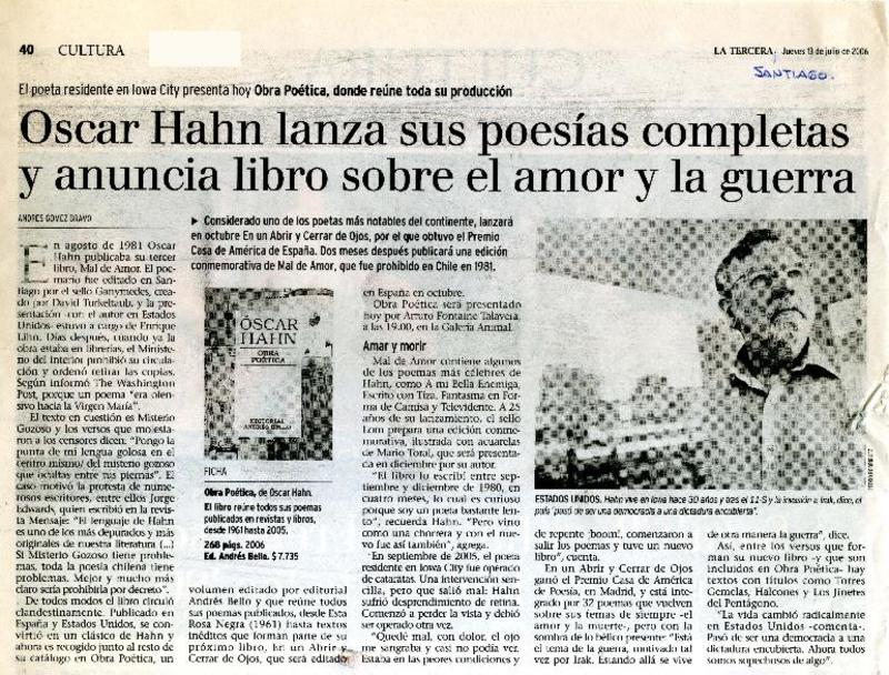 Editan obras de Oscar Hahn en Grecia, España, Portugal y Estados Unidos [artículo] Andrés Gómez Bravo.