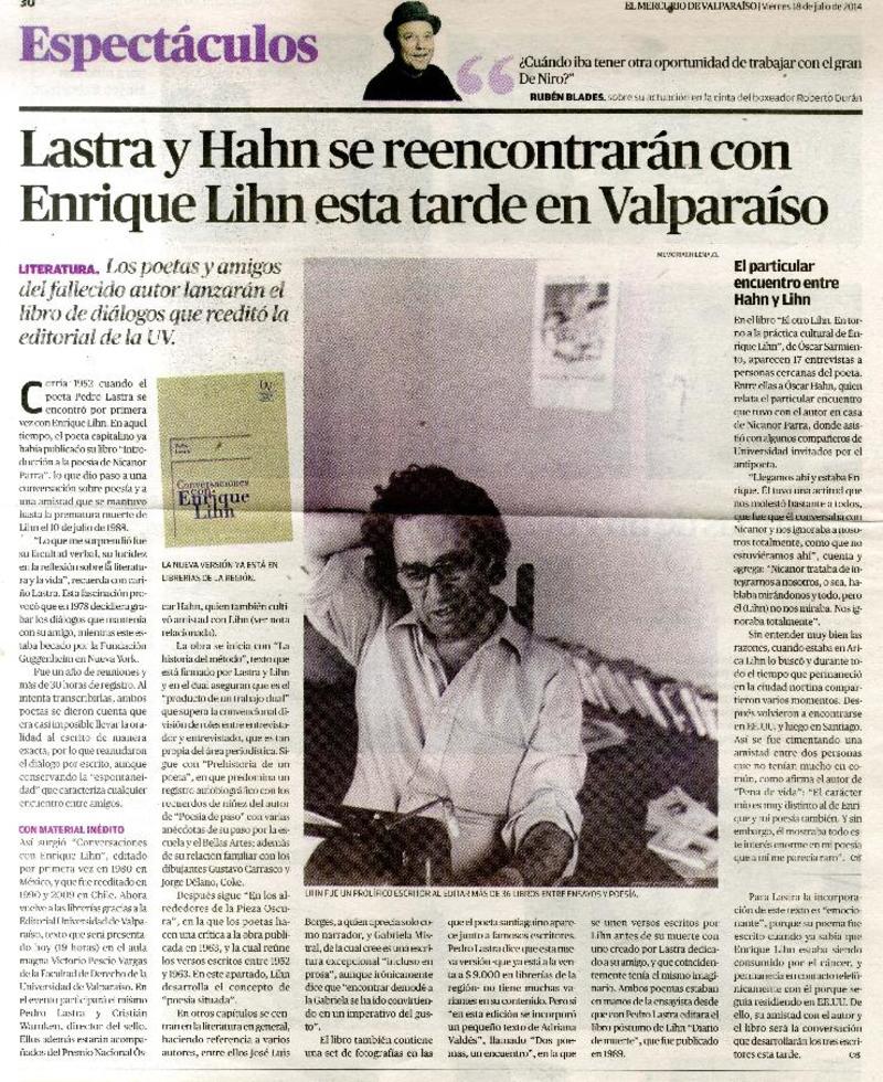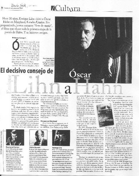 El decisivo consejo de Enrique Lihn a Óscar Hahn [artículo] Roberto Careaga C.