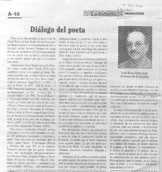 Diálogo del poeta. [artículo] Iván Vera-Pinto Soto