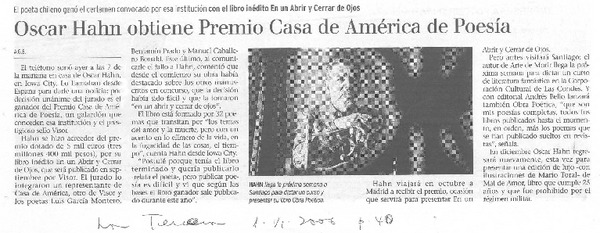 Poeta Oscar Hahn recibió Premio Nacional [artículo]