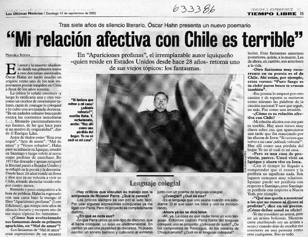 "Mi relación afectiva con Chile es terrible" [artículo] Manuela Román
