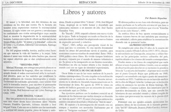 Tres escritores chilenos [artículo] Ramón Riquelme.