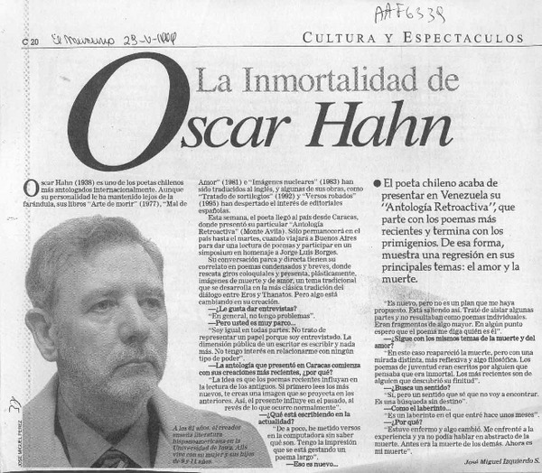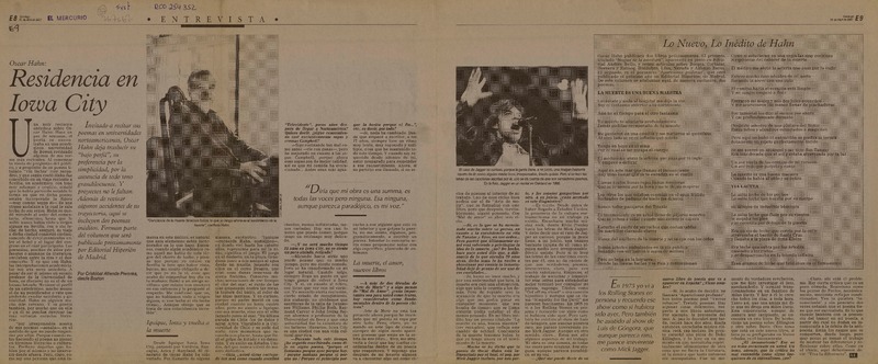 Oscar Hahn "Lo que sucede en el mundo actual me impacta profundamente" [artículo] Mario Rodríguez Ordenes
