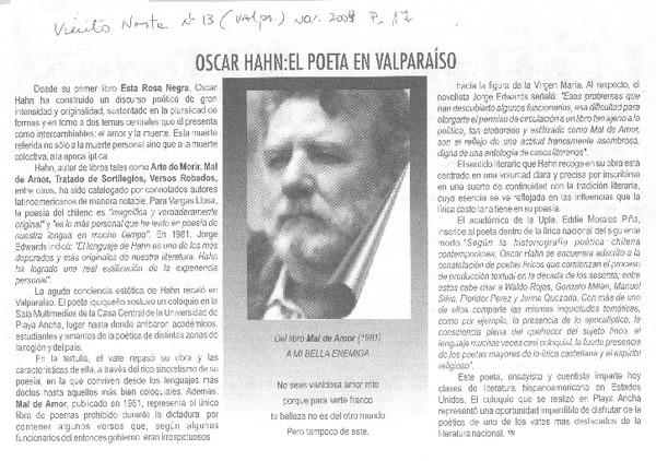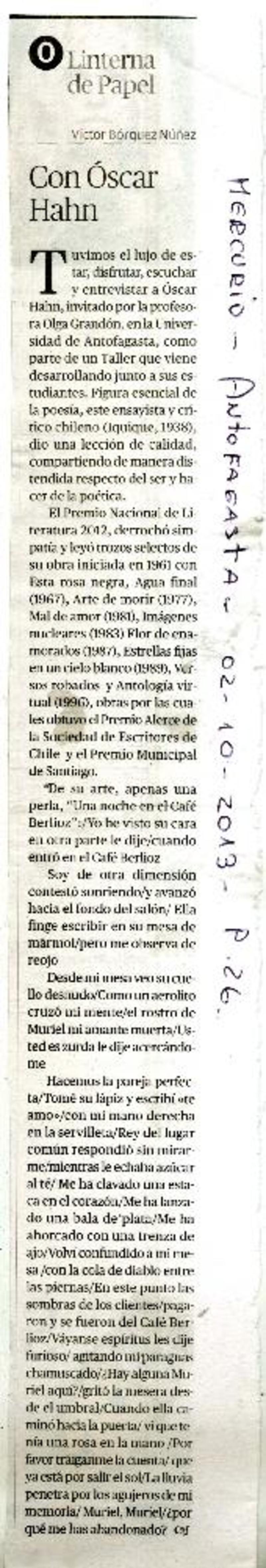 Con Óscar Hahn [artículo] Víctor Bórquez Núñez.