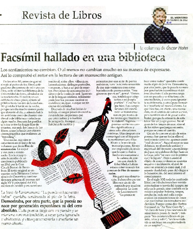 Facsímil hallado en una biblioteca [artículo] Óscar Hahn.
