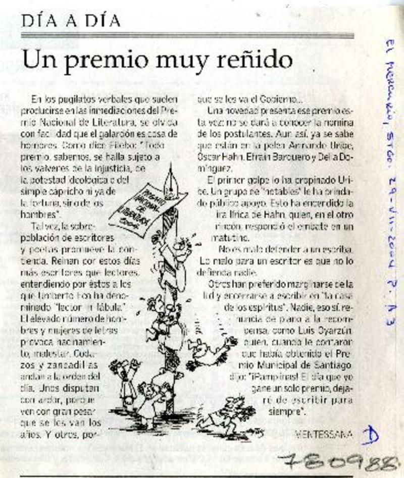 Prefiero marginarme de lo que tenga que ver con el Premio Nacional" [artículo] Bernardita Cruz M.