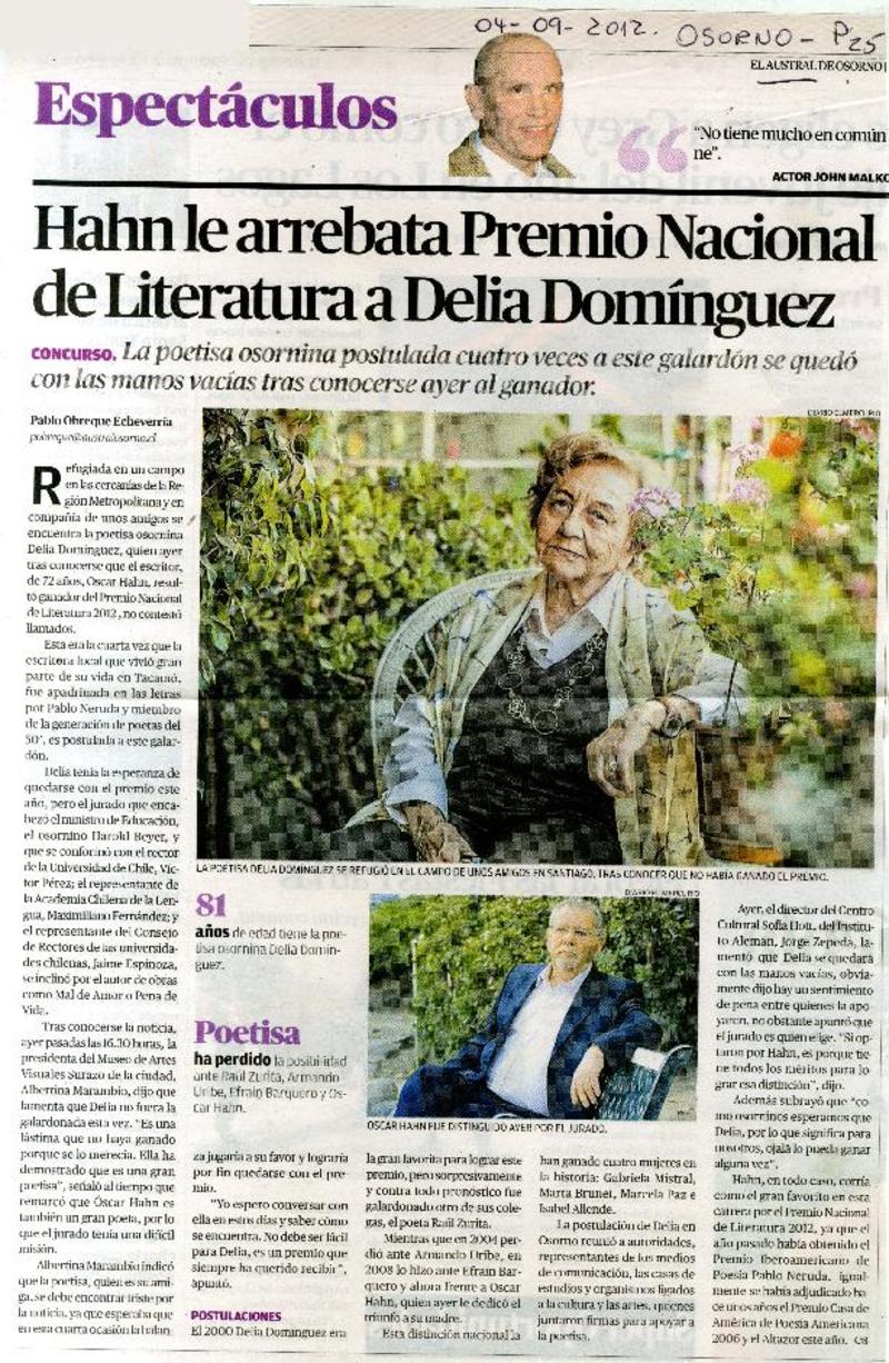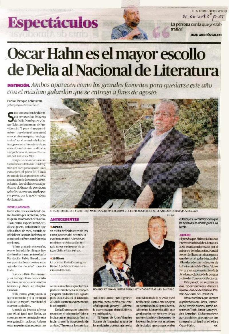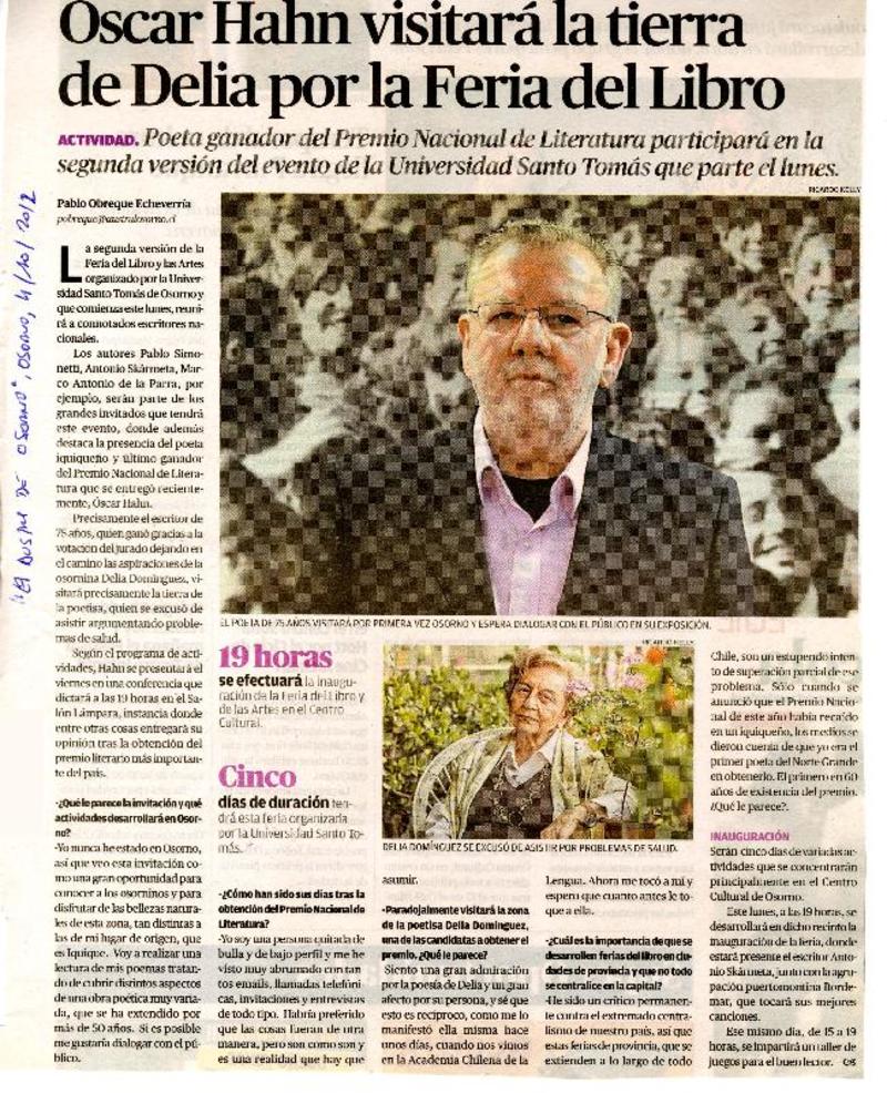 Óscar Hahn visitará la tierra de Delia por la Feria del Libro [artículo] Pablo Obreque Echeverría