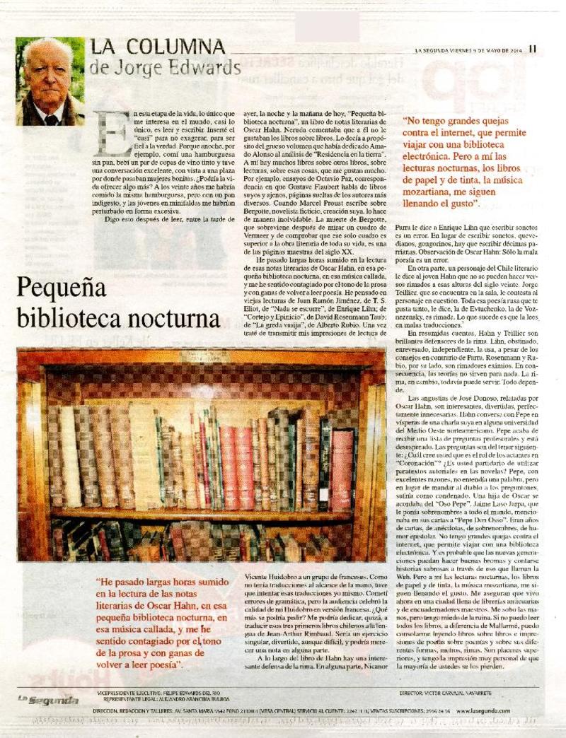 Pequeña biblioteca nocturna. [artículo] Jorge Edwards