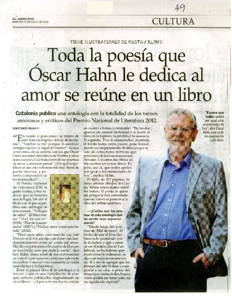 Toda la poesía que Óscar Hahn le dedica al amor se reúne en un libro [artículo] Constanza Rojas V.