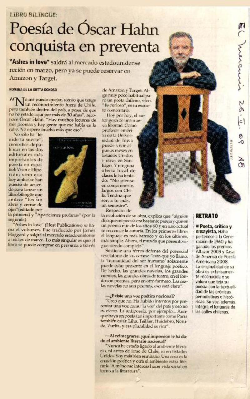 Autores chilenos - Entrevistas - Hahn, Óscar - Ashes in love