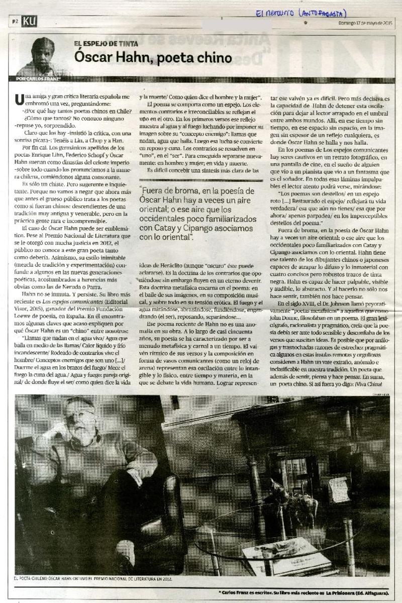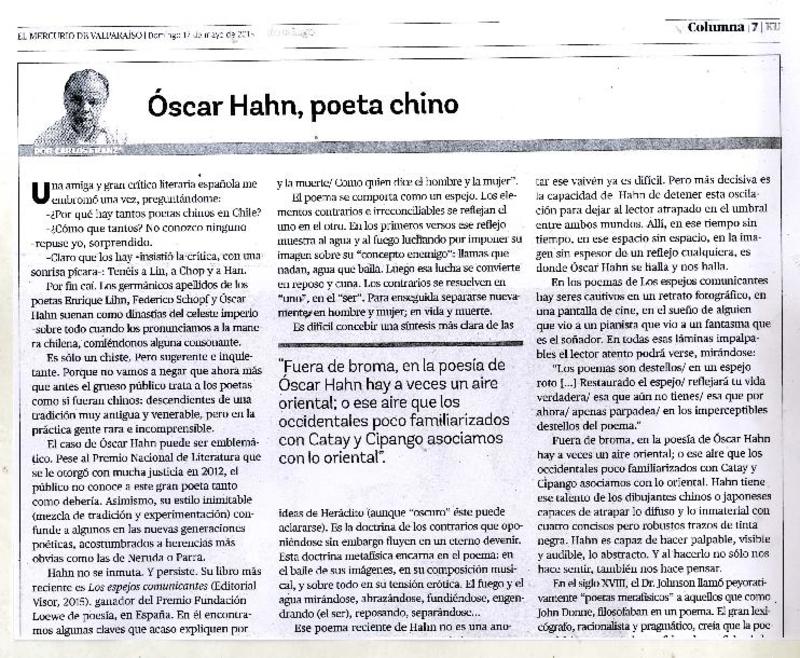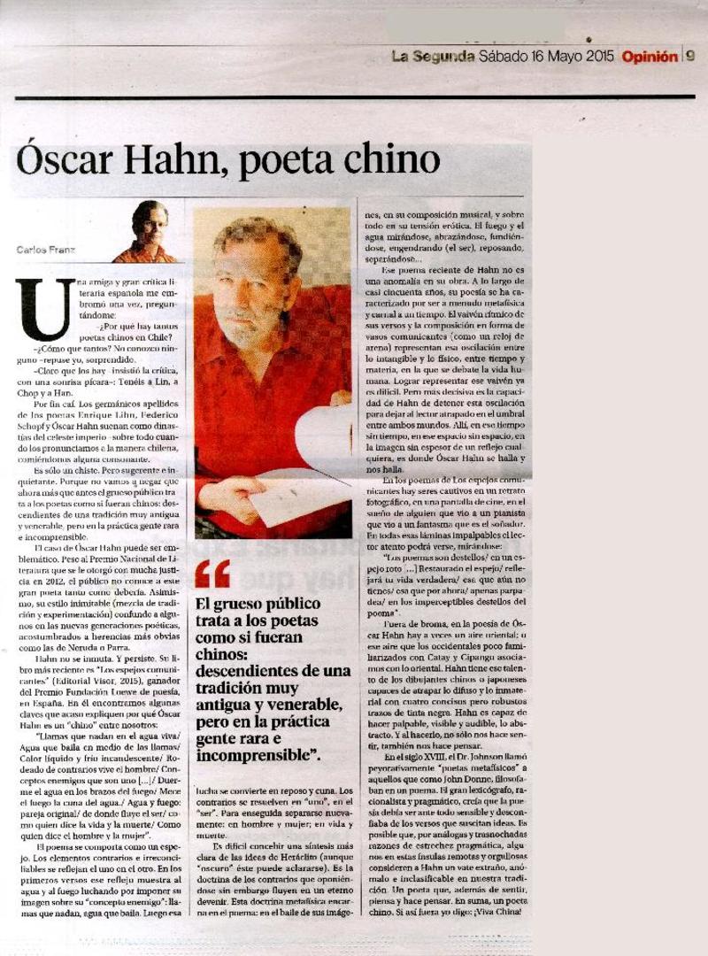 Óscar Hahn, poeta chino [artículo] Carlos Franz.