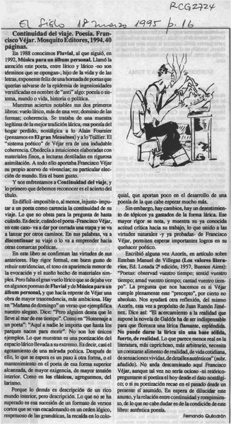 VEJAR, FRANCISCO - CONTINUIDAD DEL VIAJE