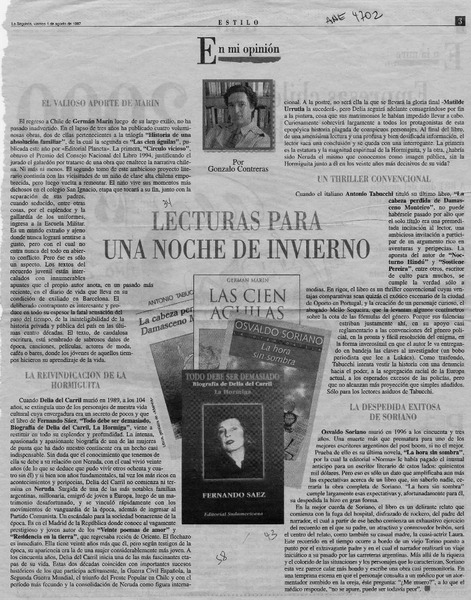 Lecturas para una noche de invierno [artículo] Gonzalo Contreras.