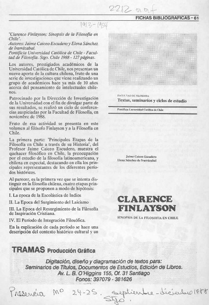 Finlayson, Clarence - CAICEO ESCUDERO, JAIME - SANCHEZ DE IRARRAZABAL, ELENA - CLARENCE FINLAYSON, SINOPSIS DE LA FILOSOFIA EN CHILE