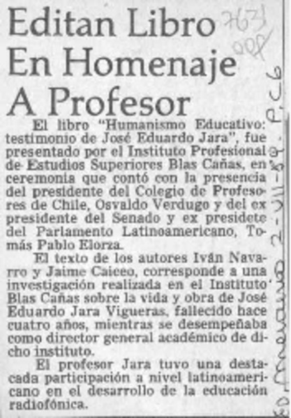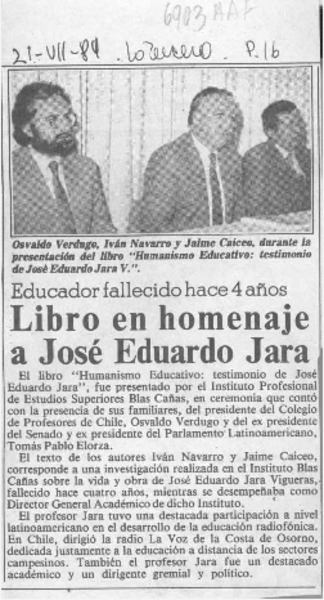 CAICEO ESCUDERO, JAIME - NAVARRO ABARZUA, IVAN - HUMANISMO EDUCATIVO, TESTIMONIO DE JOSE EDUARDO JARA