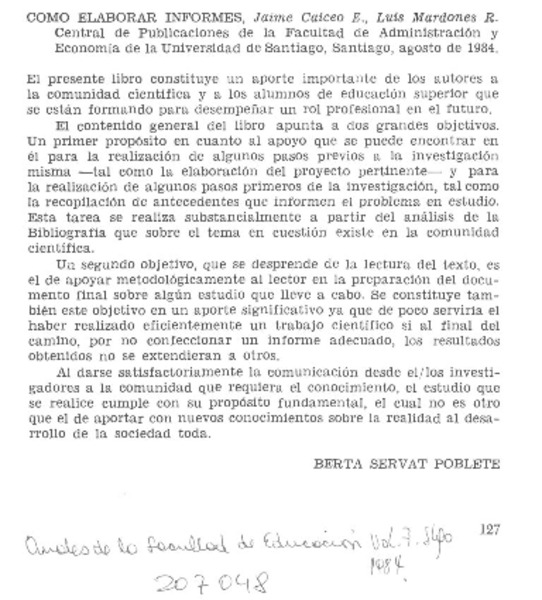 "Cómo elaborar informes" [artículo] Berta Servat Poblete.