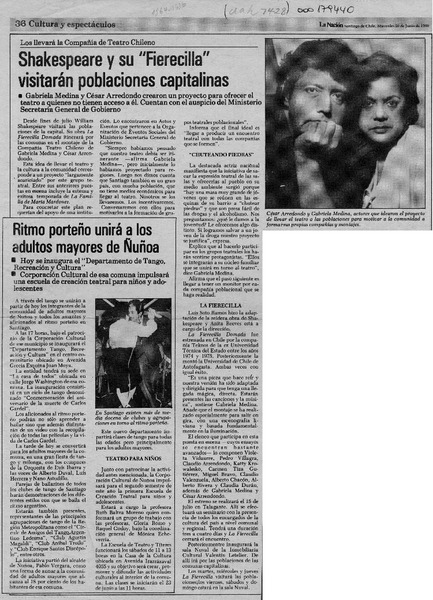 Shakespeare y su "Fierecilla" visitarán poblaciones capitalinas [artículo].
