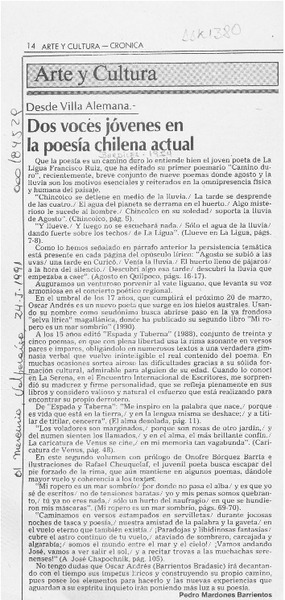 Dos voces jóvenes en la poesía chilena actual [artículo] Pedro Mardones Barrientos.