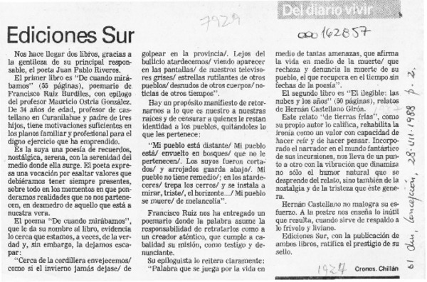 Dos libros del Fondart [artículo] Marino Muñoz Lagos.