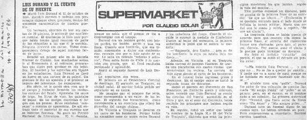 Luis Durand y el cuento de su muerte [artículo] Claudio Solar.