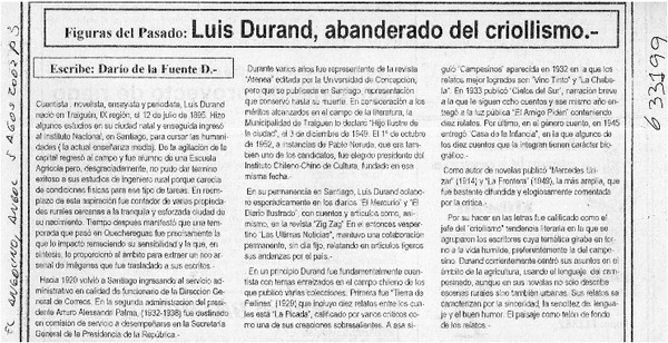 Luis Durand, abanderado del criollismo [artículo] Darío de la Fuente
