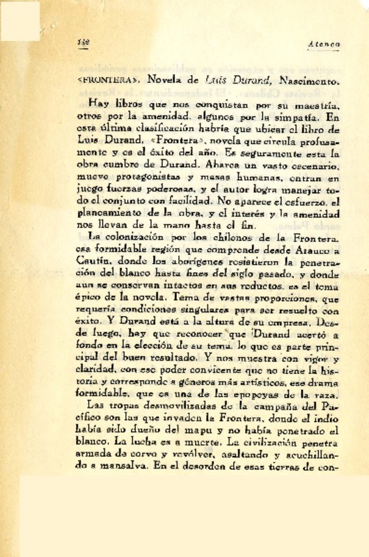Frontera" por Luis Durand [artículo] Jorge Jobet.