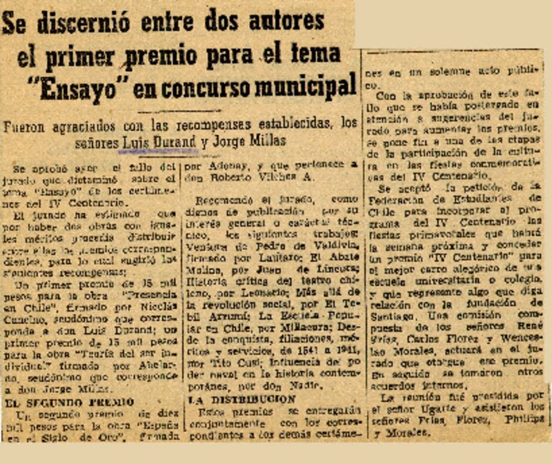Autores chilenos - Durand, Luis - Presencia de Chile