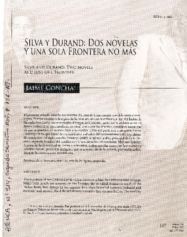 Silva y Durand dos novelas y una sola frontera no más [artículo] : Jaime Concha.