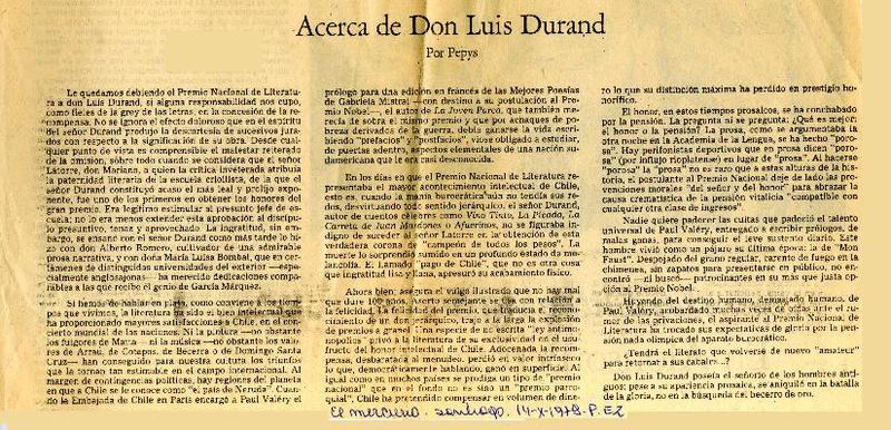 Recuerdos de Luis Durand [artículo] Marino Muñoz Lagos