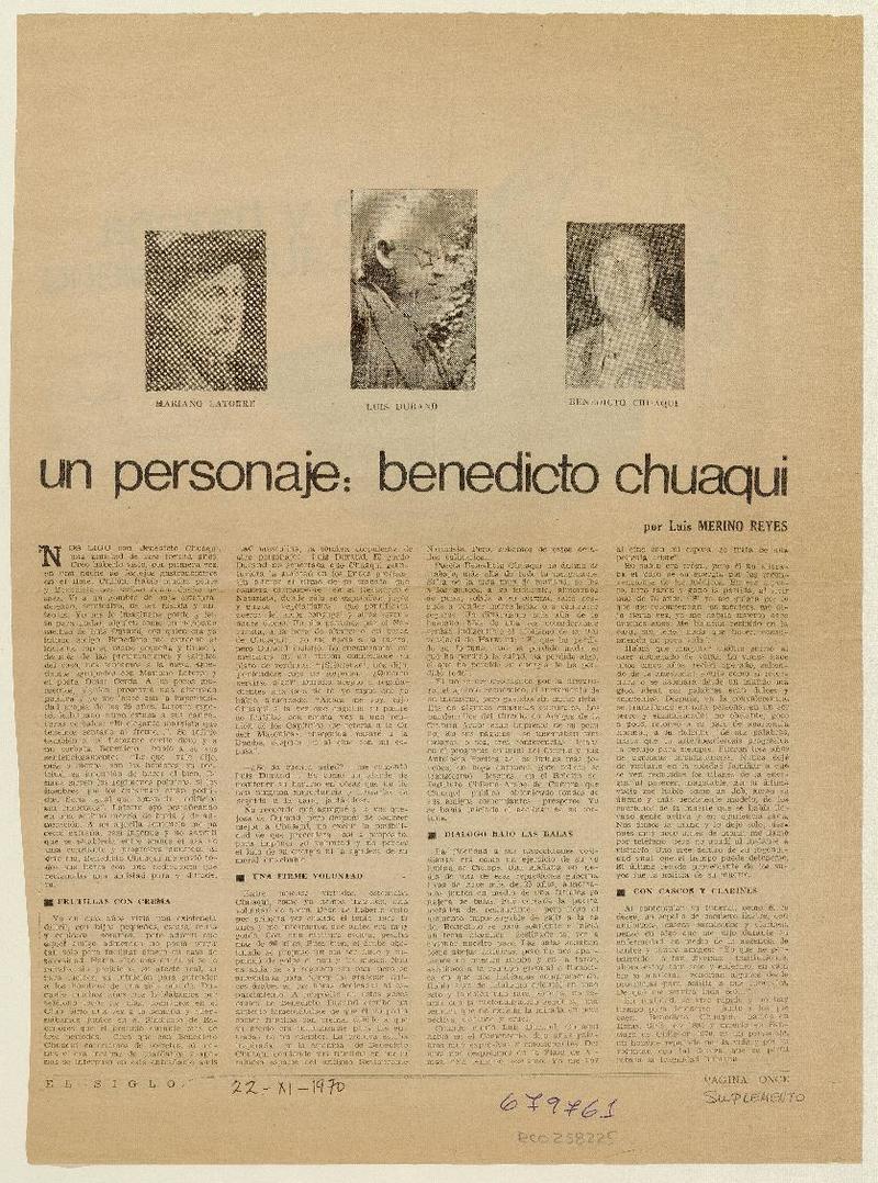 Un personaje, Benedicto Chuaqui [artículo] Luis Merino Reyes.