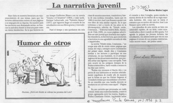 La narrativa juvenil [artículo] Marino Muñoz Lagos.