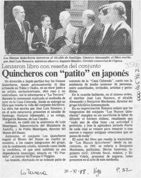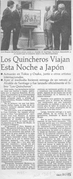 Los Quincheros viajan esta noche a Japón [artículo].