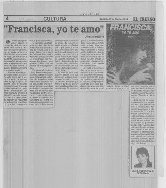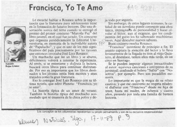 Francisca, yo te amo [artículo] Antonio Rojas Gómez.