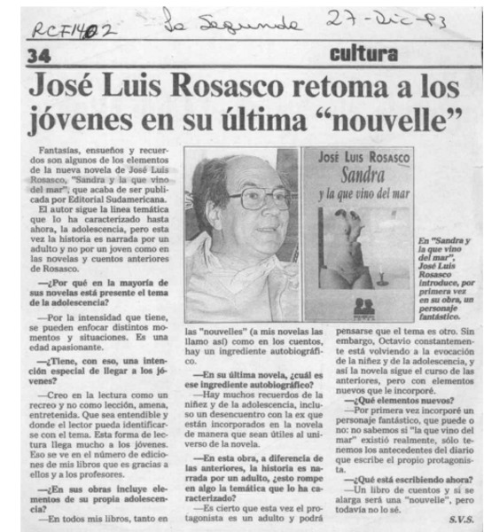 José Luis Rosasco retoma a los jóvenes en su última "nouvelle" [artículo] S. V. S.