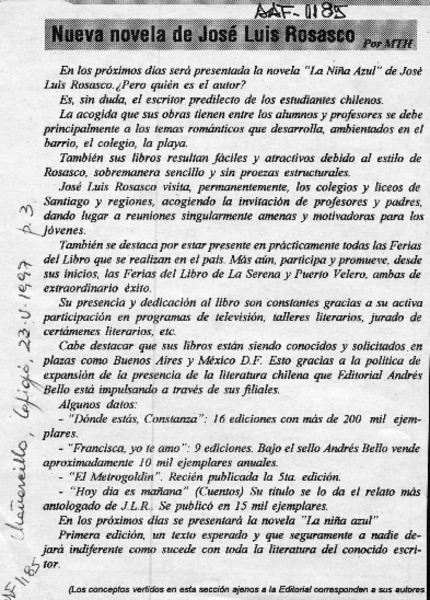 La Niña azul, José Luis Rosasco [artículo].