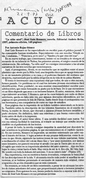"La niña azul" [artículo] Antonio Rojas Gómez.