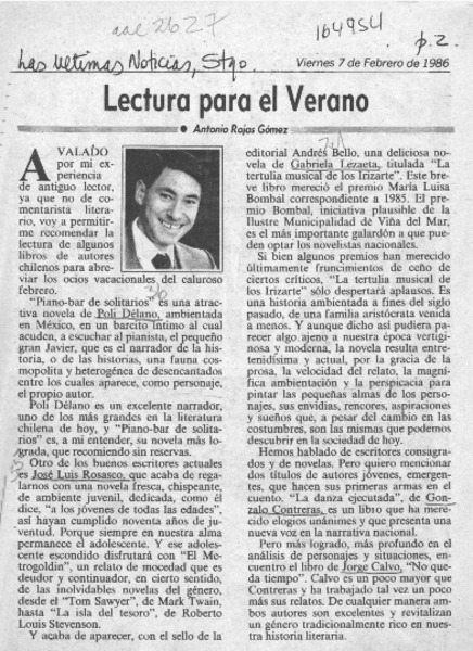 Lectura para el verano [artículo] Antonio Rojas Gómez.