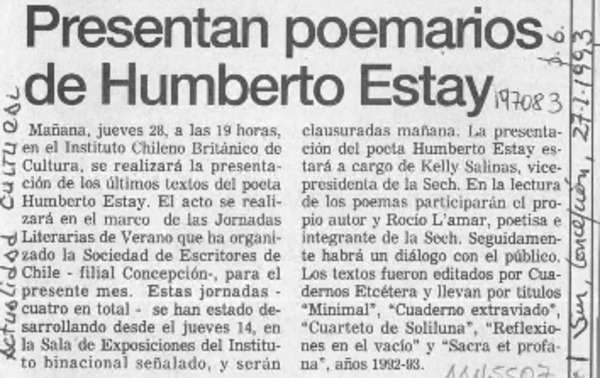 Presentan poemarios de Humberto Estay [artículo].