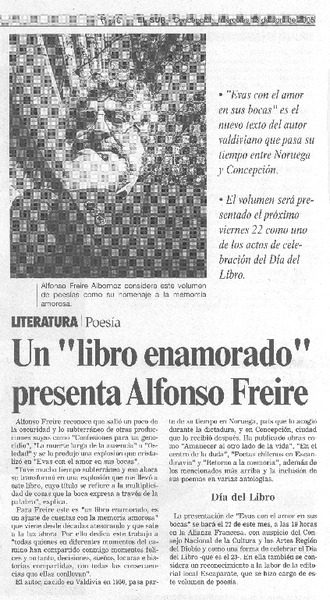 Alfonso Freire poeta invitado por la Sech [artículo].