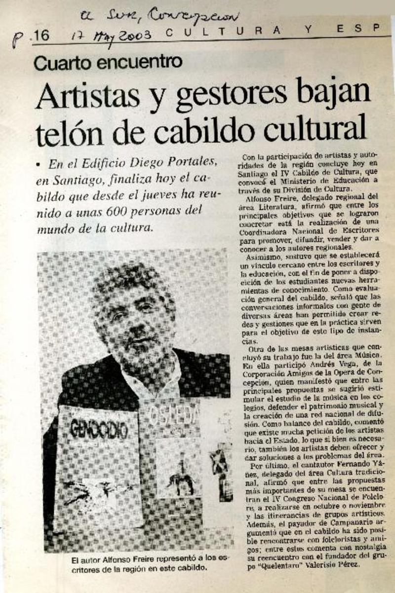Artistas y gestores bajan telón de cabildo cultural. [artículo]