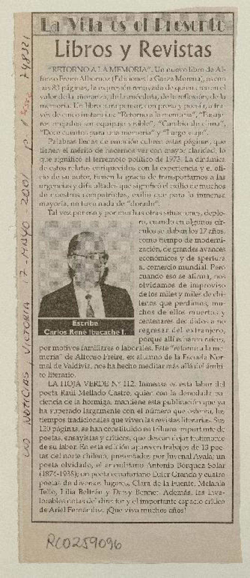 Libros y revistas [artículo] Carlos René Ibacache I.