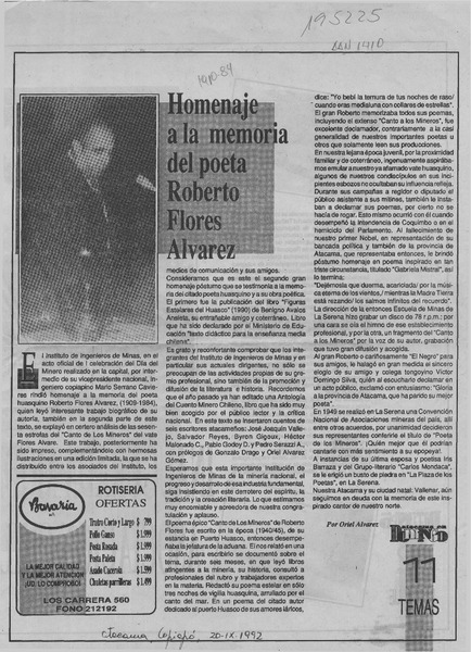 Homenaje al poeta Roberto Flores A. [artículo] Elias Jacobs J.