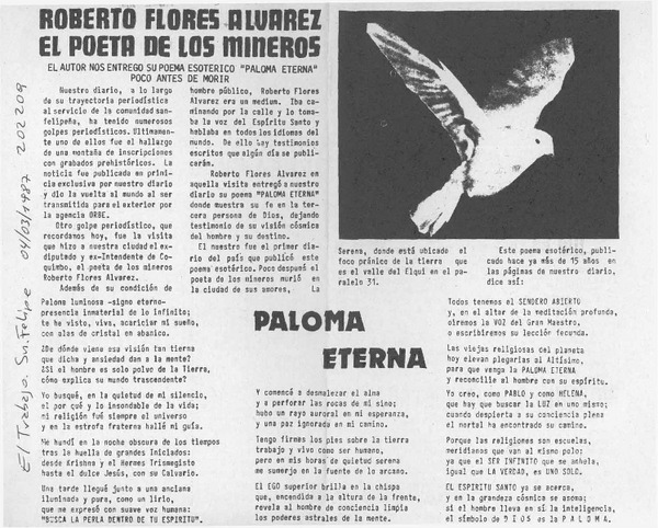 "El poeta de los mineros", Roberto Flores Alvarez [artículo] Kadur Flores.