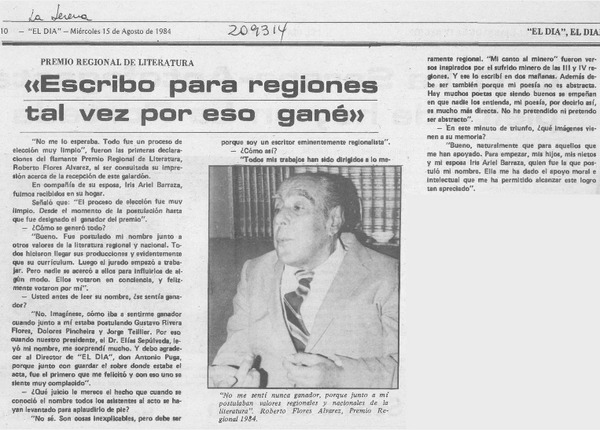 Roberto Flores Alvarez es el Premio Regional de Literatura [artículo].