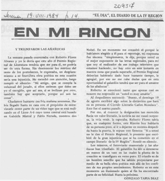 Recuerdos de Roberto Flores. [artículo]