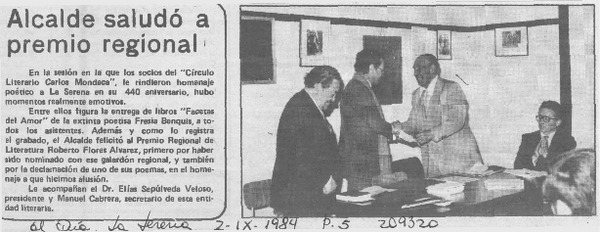 Alcalde saludó a Premio regional [artículo].